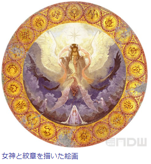 マントには紋章のような模様が描かれていますが、既存の紋章に合致するものはありません。エルネストの紋章に若干似てはいますが違うものです。国や民族、もしくはその信仰対象を示す印でしょうか。