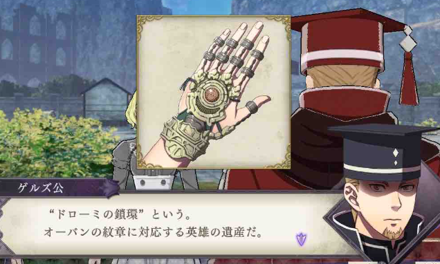 ドローミの鎖環はダグザに伝わる宝物であることが、風花雪月で語られています。