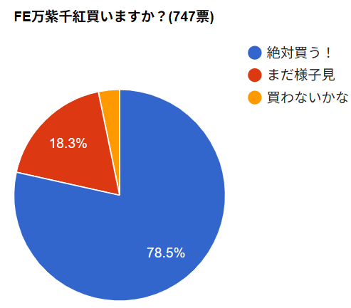 PVが公開になった次の日にXでFE万紫千紅のPVを見て買おうと思ったかどうかをアンケート取りました。絶対買う!と答えた人は80%近くと、購買意欲が掻き立てられている人がかなり多いことがわかる結果となりました。