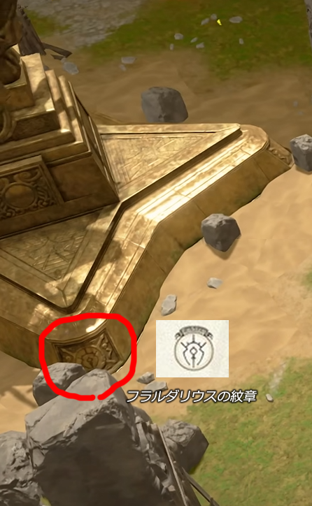 - 闘技場の台座に「フラルダリウスの紋章」が刻まれている