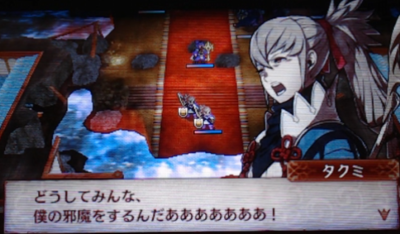 暗夜編のクライマックス、ガロンを打倒した直後に、ハイドラに洗脳されたタクミが姿を現します。