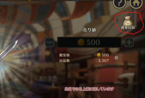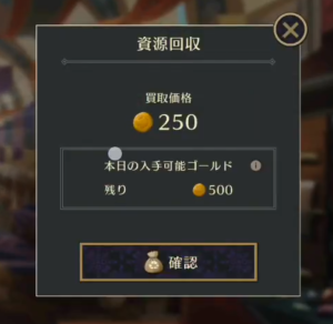 バザールでは1日500ゴールドまで手持ちのアイテムを即売りして資源回収できます。毎日忘れずにやっておきましょう。